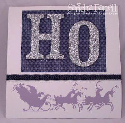 Click here to see the wonderful samples made by the design team. I decided to pull out some Ho Ho Ho chipboard that I got on the Clearance Rack. It's still available now. I used 3 of the small 'ho ho ho's" to create 3 shadowboxes and My Digital studio to help. I also made a 4th shadowbox to even out the number. The first photo is of the box I posted up on Stampin Royalty. The background was created with My Digital Studio, and the Patterned paper is Concord Crush DSP. Next I attached the H and O and then punched out a few snowflakes from Whisper White paper. Then I added Silver Shine glitter to a few of them with a two way glue pen. All of the backgrounds were created with My Digital studio. I stamped the images digitally and then reduced the opacity so that they appear lighter in colour. Some of the paper and snowflakes are made with Perfect Plum, but mostly I used Concord Crush.